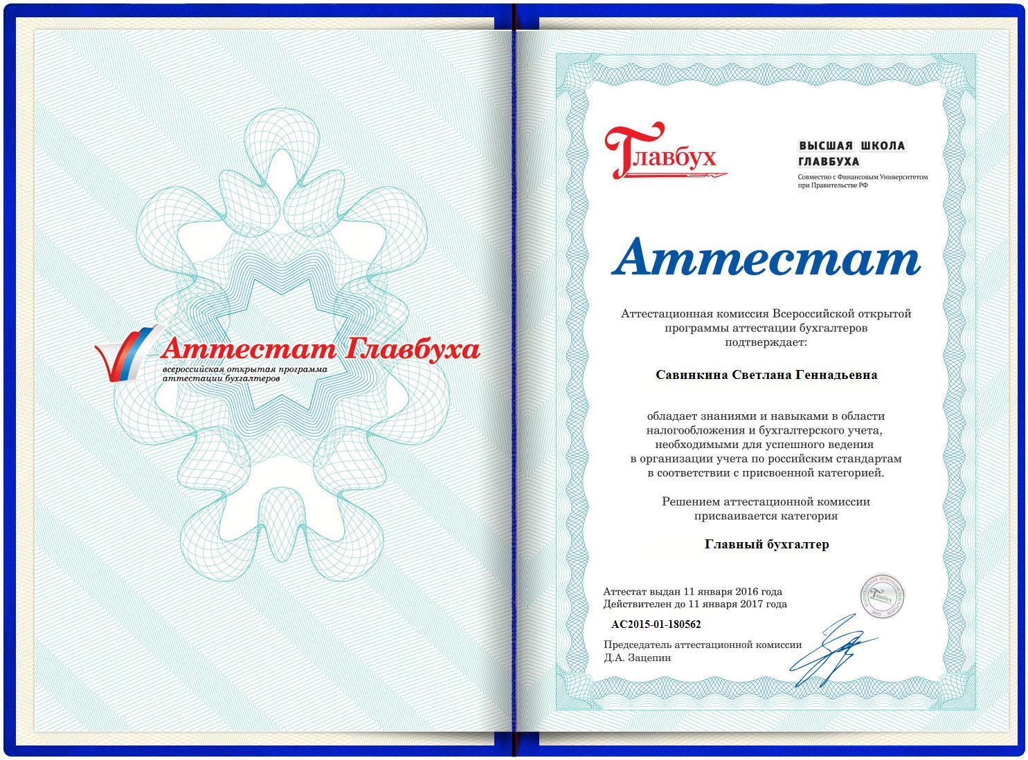Аттестат главного бухгалтера