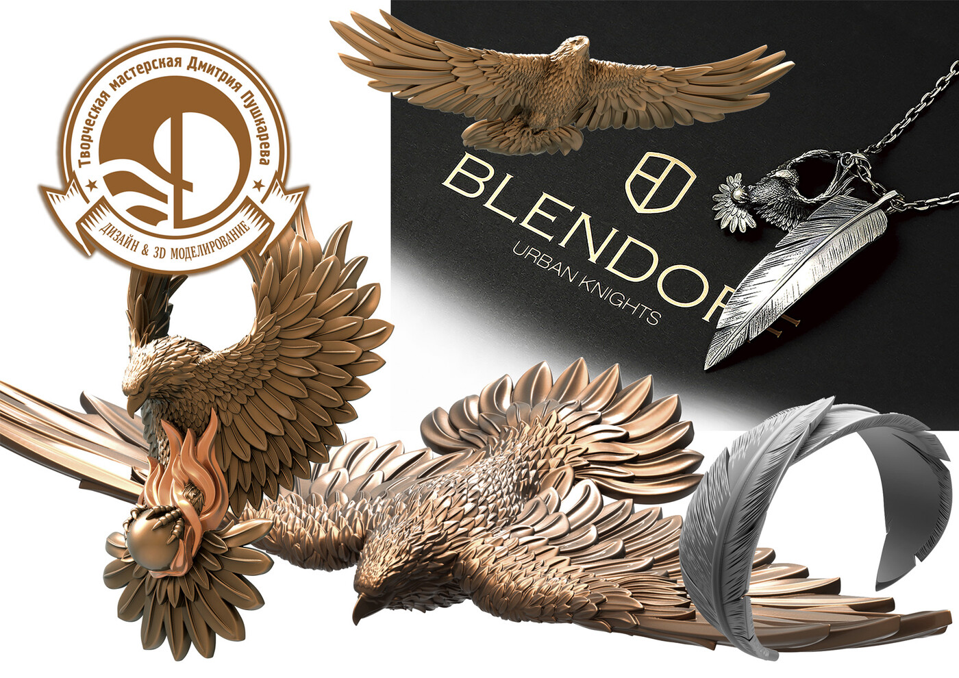 Разработка концепции, дизайна будущих моделей. 3D моделирование (highpoly-lowpoly). Предметная визуализация изготовленных моделей.